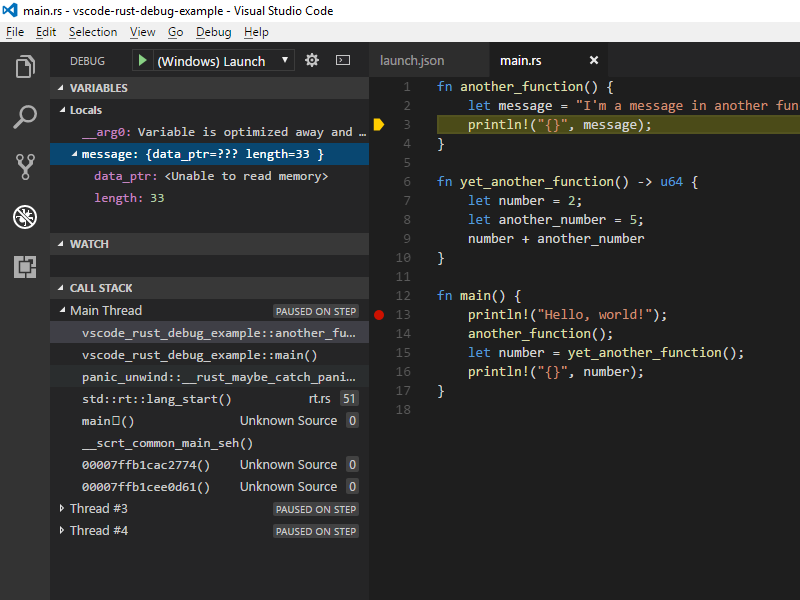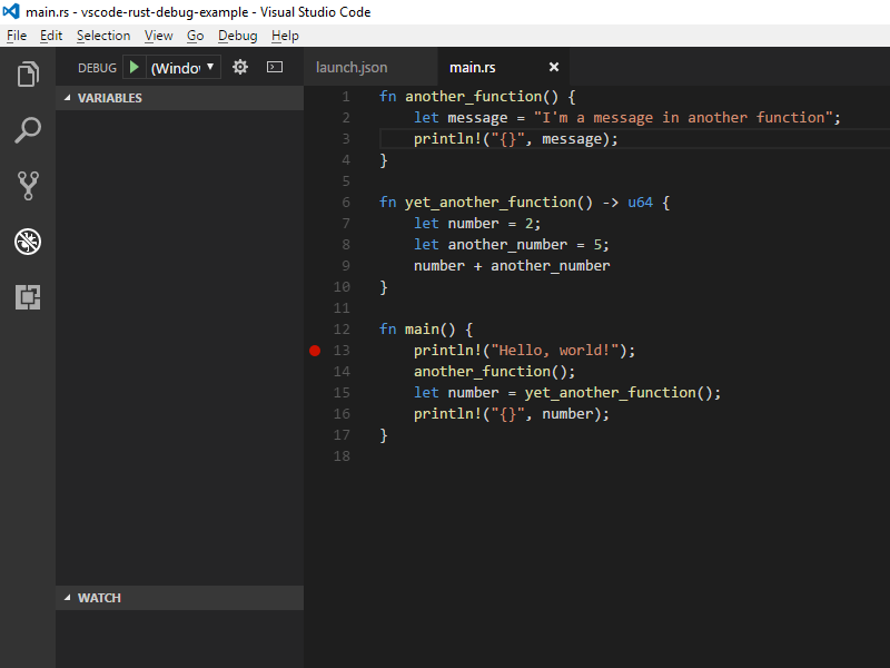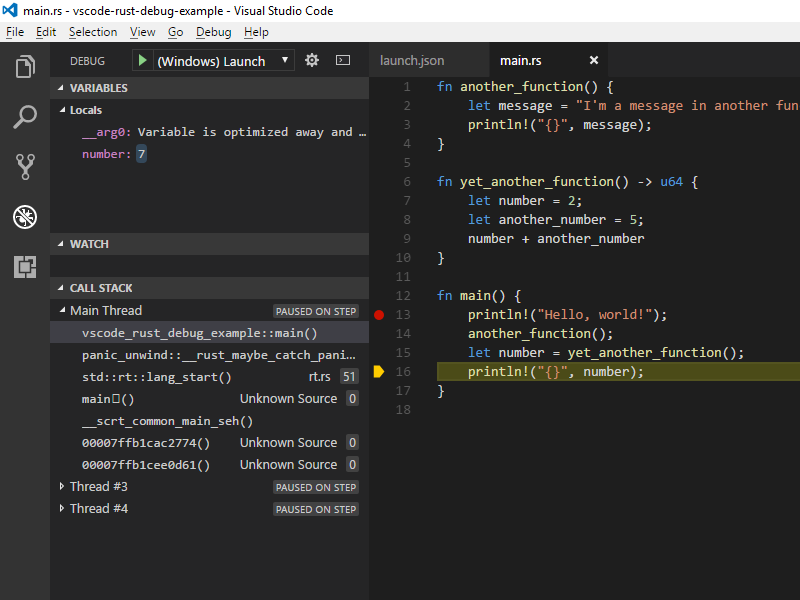 Debug Rust on Windows with Visual Studio Code and the MSVC Debugger